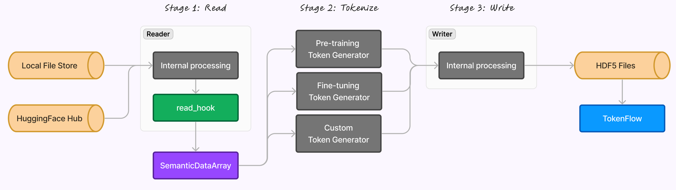 We use read hooks to convert from different input formats to our semantic data array. Pre-built hooks are provided for standard input formats and masking schemes, but the hooks also allow you to write code to transform arbitrary inputs into any valid configuration of the semantic data array.